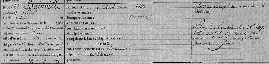 BAINVILLE Louis Les Trois Moutiers 6 Mai 1783 - Orange 25 Juillet 1807 |
