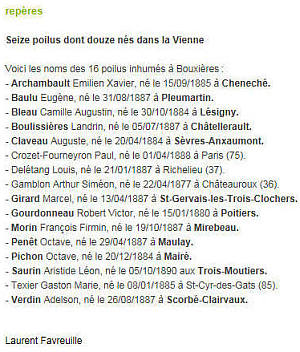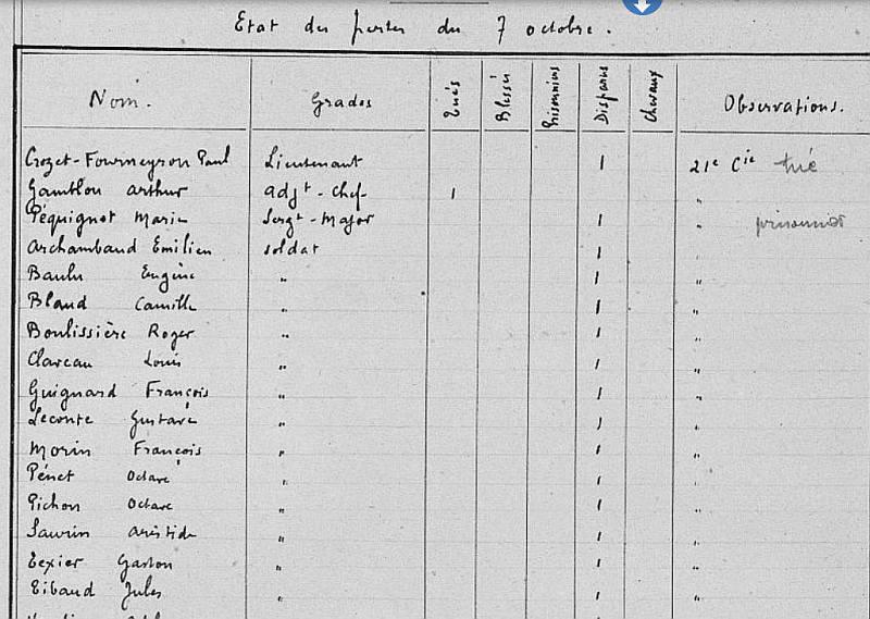 Inscrit sous le n° 37 de la liste des Trois-Moutiers. Dirigé le 7 Octobre 1907 sur le 77e Régiment d'Infanterie, arrivé au corps le dit jour N° Mle 7817. Envoyé en congé le 25 Septembre 1909 en attendant son passage dans la réserve. Certificat de bonne conduite "accordé". Passé dans la réserve de l'armée active le 1er Octobre 1909. Rappelé à l'activité par décret de mobilisation du 1er Août 1914. Dirigé sur le Régiment d'Infanterie de Châtellerault. Arrivé au corps le 4 Août 1914. Disparu le 7 Octobre 1914 à Bouxières s/Froidemont (M. et Moselle). Secours immédiat de 150 francs payé le 3 Mars 1920 à sa veuve demeurant aux Trois-Moutiers (Vienne). Porté décédé le 7 Octobre 1914 par jugement déclaratif rendu par le Tribunal Civil de Loudun le 20 Décembre 1919. Avis de décès MJJ 5242 établi par le ministère de la Guerre le 27 Mai 1922. |