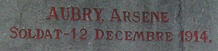 AUBRY Arsène Claude Soutiers 16 Juin 1885 - Mamers 12 Décembre 1914 |