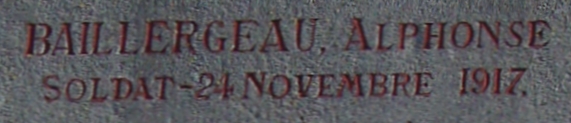 BAILLERGEAU Alphonse Raphaël Gustave Les Trois-Moutiers 3 Décembre 1897 - Vienne-le-Château 24 Novembre 1917 |