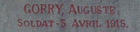GORRY Auguste René Joseph Noirterre 16 Mars 1894 - Maizeray 5 Avril 1915 Résidait à Véniers. |