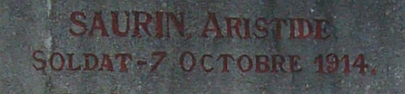SAURIN Aristide Léon Les Trois-Moutiers 5 Octobre 1886 - Bouxières-sous-Froidemont 7 Octobre 1914 |